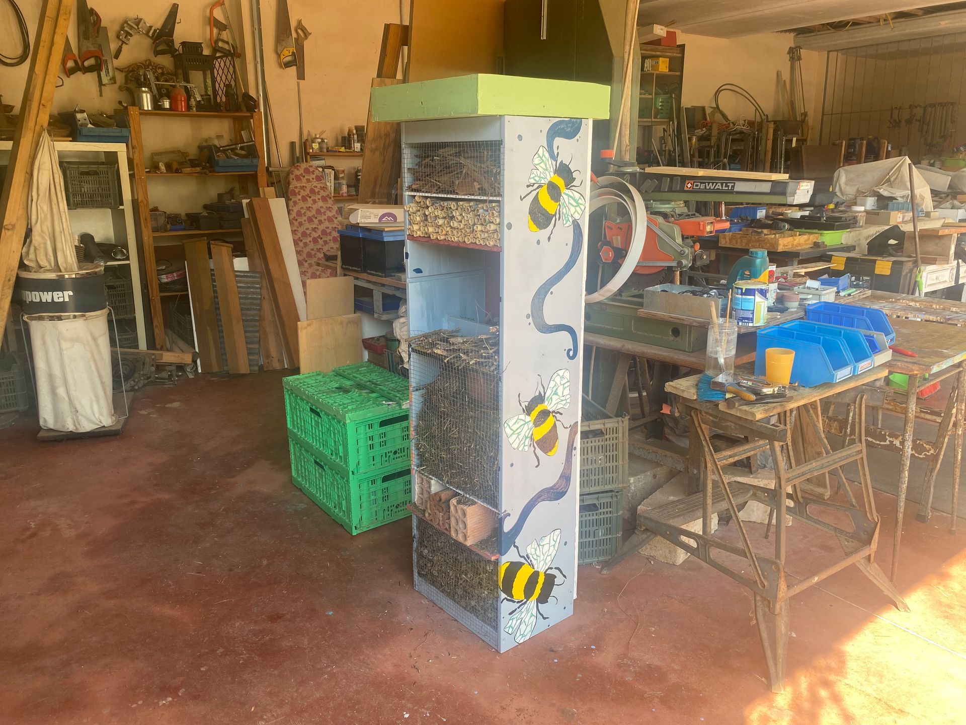 Our projects were dependent upon our ideas and inspiration, even though we got support, we still had to work with our creative side and get challenged to do a project we were passionate about. Through some reflection I decided to work on my very own insect hotel. After other building projects and introduction into building machinery, it became a fun new learning experience for me. Since I never done anything like this before, I learned a lot about reusing materials which I have at hand, recycling old furniture and especially learning about the living environment of insects and bees. A lot of research helped me do my best to make a comfortable home for them. I was encouraged to do it my way and to add my artistic style to it. So I had a lot of fun making it my artwork. A lot of time, effort and thinking went into it so that I am proud of the finished product and would gladly follow along the development of the insect’s nesting process.