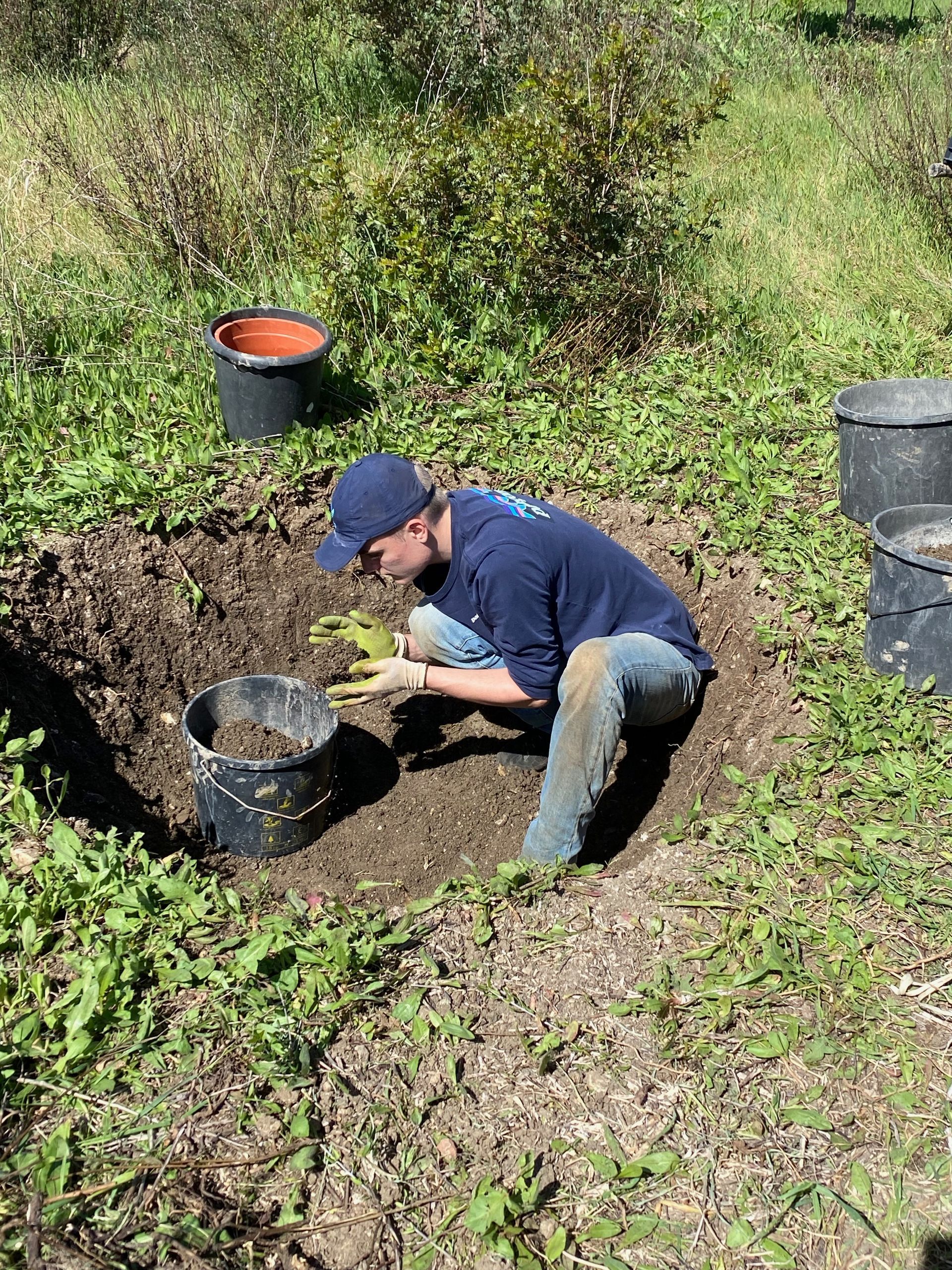 Ayudamos a desmalezar y cavar el pozo. Agregamos tierra al horno. ¡Y nuevamente tuvimos un almuerzo fantástico!